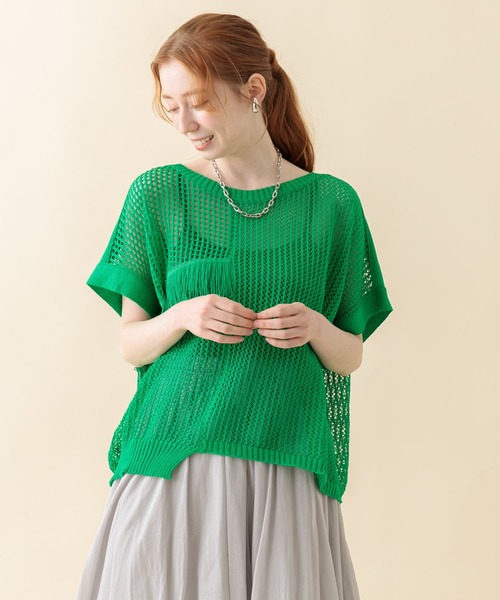 ゆるシルエットの麻混ニットプルオーバーが入荷しました。○POINT・春夏も着易い、麻15%混のニットプルオーバー。・アシンメトリーのフリンジがポイント。・透かし編みで風通しが良く、レイヤード次第で長い期間お召いただけます。・【TRANOI. チェーンワイドニットパンツ(No.84520)】とのセットアップもおすすめです。○STYLING・タンクトップやTシャツにオンすれば流行りのレイヤードスタイルが完成。・広めの身幅と長過ぎない着丈はパンツもスカートもコーディネートし易いです。裏地:なし(ペチパンツ付き)光沢:なし伸縮性:あり透け感:裾のみあり生地の厚さ:普通ポケット:なし【TRANOI.】Fukuoka japan / Women’s wear brand.虎の衣(威)を狩る狐 トラノイ。ありそうでなかった衣で毎日新しい自分に!
