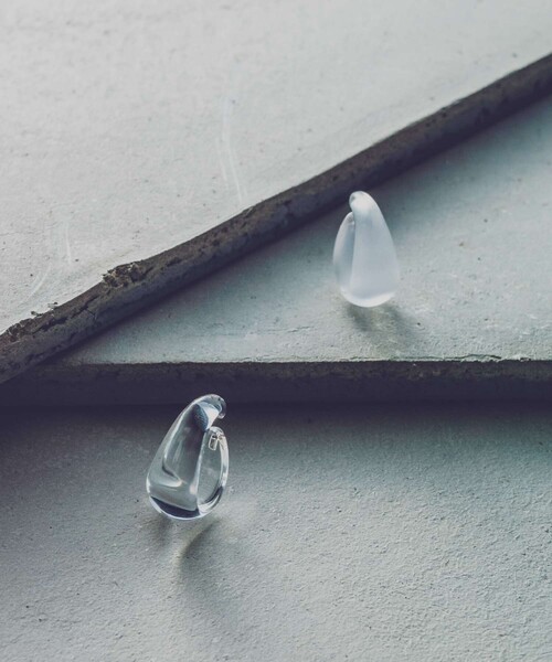 "ヘイズ クリア イヤーカフ" 水滴のようにぷっくりとしたフォルムのイヤーカフ。 ボリュームがありながらも軽やかな佇まいで、どんなスタイリングにも溶け込みます。 瑞々しいクリアと、氷を思わせるフロスト加工の2種類がラインナップ。 メタル素材のジュエリーとも好相性。 お持ちのジュエリーとの合わせで、こなれたスタイリングに仕上げてくれます。 非常に軽い着け心地も魅力のアイテムです。 ※シングル(片耳)販売の商品です。