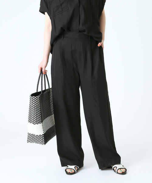 【2022SS】B.C STOCK人気のリヨセルワイドパンツが今年も登場!生地はそのままデザインをリニューアル◎ウエストタックとやや太めのワイドストレートシルエットにして、スッキリとかっこいいシルエットに仕上げました。リヨセルの肌触りが柔らかく、軽い素材感が大好評のアイテム◎手洗い可能でデイリー使いやご旅行にもオススメの一着です。同素材のシャツと合わせてセットアップでもお楽しみいただけます!●シリーズ商品リヨセルスキッパーシャツ(品番:22050700402420)**********************透け感:なし(イエローのみ、ややあり)裏地:なし伸縮性:なし光沢感:なし生地の厚さ:普通**********************【スタッフ着用コメント】 《スタッフ staff.s》 身長:165cm/普段サイズ:S~M/着用サイズ:フリーサイズ感: ウエストはややゆったりめですが、後ろゴム仕様で下がってくることはありませんでした◎素材感:パウダリーな表面感と軽い生地感です。着心地: 暑い日にも心地良く着られそうなリラックス感のあるアイテムです。**********************【スタッフ着用コメント】《スタッフasako》年齢:30代前半/身長:153cm/体型:普通/普段サイズ: S~M/着用サイズ :フリーサイズ感:長すぎず、ウエストが内側で絞れるので丁度良いサイズ感で着られました。タックインしてもウエストがキレイに見えるので、嬉しいデザインでした◎素材感:てろん、とした素材感が肌心地の良いパンツ。着心地:薄手で柔らかく、動きやすいです。ゆるっと着られるのでリラクシーな着心地でした。**********************※取り扱いについては、商品についている品質表示でご確認ください。※店頭・屋外での撮影画像は、光の当たり具合で色味が違って見える場合があります。商品の色味は、スタジオ撮影の画像をご参照ください。モデルサイズ:H165 採寸情報は「サイズ・詳細」をご確認ください 着用サイズ:フリー本体:手洗い可能
