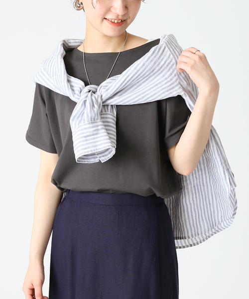 【2022SS】 B.C STOCK きれいめな表面感のドルマンTシャツ。 少ししっかりめのカット素材を使って、肩の切り替えのないドルマン型のカットソーをお作りしました。 裾は前後の着丈に差をつけて、ラウンドテールのデザインに。シンプルながらカジュアルになりすぎず、大人キレイな印象になるように仕立てました。 生地もしっかりしてきれい見えするので、布帛のような印象に。厚みがあるので、ホワイト以外のお色は一枚で着ても透けずに楽な一枚です。 洗濯機洗い可能でデイリーユースに気兼ねなく取り入れて頂けます。 ********************** 透け感:なし(ホワイトのみ、ややあり) 裏地:なし 伸縮性:ややあり 光沢感:なし 生地の厚さ:普通 ********************** 【スタッフ着用コメント】 《スタッフasako》 年齢:30代前半/身長:153cm/体型:普通/普段サイズ: S~M/着用サイズ :フリー サイズ感:余裕を持って着られるサイズ感でした。二の腕を隠してくれる袖丈と、ヒップにかかる丈感が体型カバーにも◎サイドにスリットが入っているので、ゆとりがあっても軽やかさのあるサイズ感でした。 素材感:スムースな素材感で、毛羽立ちがなくキレイ見えにも着こなしやすい素材でした。 着心地:やや伸縮性があり、動きやすく着心地が良かったです。 ********************** ※取り扱いについては、商品についている品質表示でご確認ください。 ※店頭・屋外での撮影画像は、光の当たり具合で色味が違って見える場合があります。商品の色味は、スタジオ撮影の画像をご参照ください。 モデルサイズ:H153 採寸情報は「サイズ・詳細」をご確認ください 着用サイズ:フリー