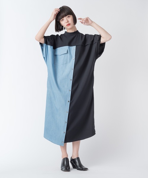 【LaSRIC/ラスリック】スパンドビータンブラー&4.5ozインディゴデニムアシンメトリーなデニム切り替えデザインがポイントのデザインワンピース。さらっと感のあるソフトレーヨン素材とハリ感のあるナイロン素材がマッチしたスパンドビータンブラー生地と薄手デニム生地を使用、暑い季節に快適に着用いただけます。ゆったりとしたシルエットと大胆なデニム使用が目を引くワンピースです。サイズ(38) 着丈120㎝ 身幅62㎝ 裄丈45㎝モデル身長165㎝原産国:日本【La SRIC】Japan Madeを中心に上質な素材と細部の仕様、縫製から感じられる着心地にこだわった完成度の高いパターン、少しエッジーなデザインを展開する東京ブランド【INFORMATION 】▼お気に入り登録▼『♡』マークを押してお気に入り登録をすると、割引クーポンの発行/セール開催の通知/タイムセール通知/人気商品の再入荷通知など、miniyu取扱いブランドのお得な情報を受け取ることができます。 気になった商品はどんどん『♡』マークを押して、登録してくださいね♪