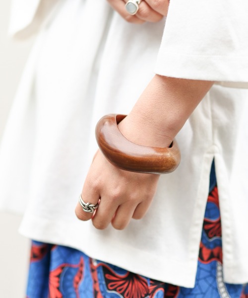 コーデに取り入れるだけでシーズンムードをプラスしてくれるウッドバングル。エスニックな雰囲気のあるブラウンカラーは夏らしい派手カラーとの相性も抜群!ウェーブデザインにすることでコーデに抜け感をプラスしてくれます。大ぶりなデザインは、シンプルながらも存在感のあるバングルに。お持ちのバングルとの重ね付けでアレンジも楽しめます。シーズン感のある小物はちょっとしたギフトにもおすすすめ。気になった商品はお気に入り登録がオススメです! 入荷情報や、クーポン情報が通知されるようになります。※画像の商品はサンプルです。 実際の商品と仕様、加工、サイズ、素材が若干異なる場合がございます。