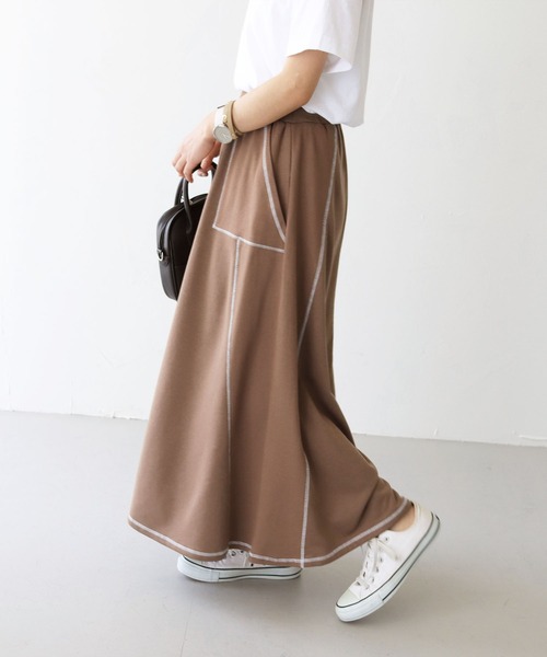 配色ステッチが目を惹くカットフレアスカート2022 S/S COLLECTIONミニ裏毛とリブで切り替えたカットスカート。綿混でさらっとした手触りなので夏服にオススメ。配色ステッチデザインがアクセントになりシンプルながらも存在感のある1着に。縦のラインでスタイルアップ効果があるのも嬉しいポイントです。ウエストはゴムになっているので着脱簡単♪普段使いはもちろん、お家でのリラックスタイムにもおススメです。≪Styling≫トップスはウエストにタックインしたりショート丈のものと合わせるとバランスが取りやすく、スタイルアップ効果も期待できるアイテム。裾が広がり過ぎずさりげないフレアシルエットなので、幅広く様々なスタイリングをお楽しみ頂けます。≪Fabric&Detail≫伸縮性・・・あり厚み・・・★★★☆☆裏地・・・なし透け感・・・なし▼《お気に入り登録》のおすすめ▼【商品のお気に入り登録】気になるアイテムのハートマークを押してお気に入り登録すると完売カラーの再入荷通知やラストの通知、セール通知を受け取ることができます。【ブランドのお気に入り登録】新商品や再入荷など、いち早くブランドのお得な情報を受け取ることができます。ぜひご利用頂き、お買い物をよりお楽しみください。≪Brand introduction≫【She mo shelly / シーモシェリー】 定番で使えるベーシックデザインからディティールに拘ったデザインまで、トレンド要素をバランス良く落とし込んだ商品ラインナップをご提案しています。※撮影場所により、実際の色味と若干異なる場合がございます。 あらかじめご了承くださいませ。