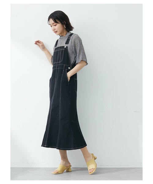 マーメイドラインが柔らかな表情をメイクするジャンパースカート。 張りのあるツイル素材がシルエットをきれいにみせてくれる1枚です。ステッチがメリハリを効かせ、ぐっとおしゃれ感をアップ。 合わせるトップス次第で印象が変化する、コーデの幅が広がるアイテムです。 透け感[無し] 裏地[無し] 伸縮性[無し] 光沢感[無し] 生地の厚さ[普通] 付属品[無し] ポケット[有り]前4つ 後ろ2つ