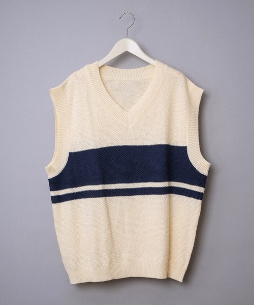 Revo.(レヴォ) 夏のレイヤードスタイルに活躍するニットベスト 弾力性・柔軟性のあるアクリル素材と、通気性・吸湿性を兼ね備えたコットン素材を編み込んだニットベスト。前後のパネルボーダー編みが特徴的でナチュラルでカジュアルな風合いを両立しています。自宅で手洗いが可能なイージーケア素材も嬉しいポイント。Tシャツの上からサラッと羽織るだけで簡単に今っぽく、そしてお洒落に格上げしてくれるアイテムです。ホワイト、ネイビー、ブルーの3色展開。 ▶ナチュラルでカジュアルな風合いのサマーニット素材 ▶重ね着に相性の良いVネック ▶柔らかなタッチと優しい肌触りが特徴的 ▶ドロップショルダーでゆったりとしたシルエット ▶リラックスしたぬけ感のある着心地 ▶飽きのこないシンプルディテールで幅広いスタイリングに活躍 ▶細身のスキニーパンツやワイドパンツとも相性バッチリ ▶女性の方でも着用して頂けるユニセックスデザイン ▶オールシーズン使えて着回し可能 ▶トレンドの古着MIXスタイルにも◎ COORDINATE ロンTやシャツ、スウェット、パーカーなどに着合わせたレイヤードスタイルや、テーラードジャケットやセットアップなどのキレイめスタイル、カーディガンやGジャン/デニムジャケットなどのカジュアルスタイルのインナーにも最適です。デニムやチノパンと合わせたカジュアルスタイルから、ワイドパンツと合わせたストリートスタイル、トレンドのフレアパンツやスラックスなどと組み合わせた現代風なモードスタイルにも◎。また、スタイルのアクセントとして、ミニショルダーやボディバッグ、巾着バッグ、バケットハット、サングラスなどの小物使いも◎。足元はスニーカーやスポーツサンダルは勿論の事、ローファー、アンクルブーツ、レザーシューズなどの革靴で上品な雰囲気の合わせも◎。 Revo. 音楽、古着、ワーク、ミリタリー etc ... 様々なカルチャーやライフスタイルからインスパイアされたアイデアを、素材の風合いを活かしたベーシックアイテムへとアウトプット。シンプルな中にも「匂い」を感じるナチュラルスタイルを提案します。 ================================= ◆気になるアイテムは≪お気に入り登録≫がオススメ! 入荷情報やクーポン、セール情報のお知らせを受け取ることができます。 ================================= ※撮影画像はサンプル品を使用しているため、実際の商品と仕様、加工、サイズが若干異なる場合がございます。また、可能な限り実物に近いカラーにて掲載していますが、使用しているパソコンのモニター設定や、携帯電話のメーカー・機種により実際のカラーと異なって見える場合がございます。予めご了承ください。
