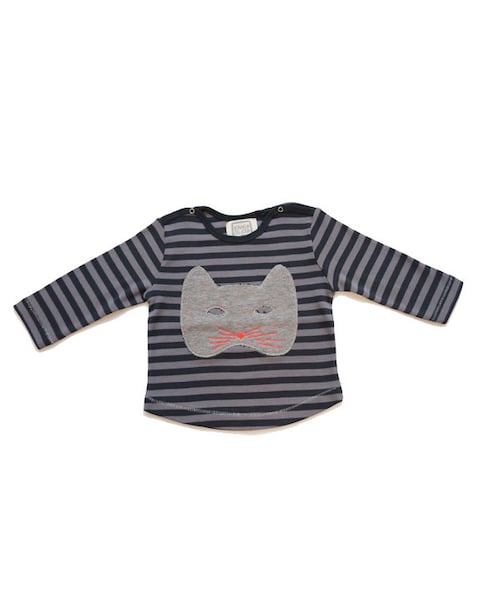 Bonheur du Jour(ボヌール・ドゥ・ジュール) Poucette 長袖Tシャツ <ブランド紹介> 代々、繊維関連の仕事を続ける一家に生まれたカトリーヌが始めたパリの子供服ブランドBONHEUR DU JOUR(ボヌール・ドゥ・ジュール)。 高品質な素材をい、優しい風合いの布地にオリジナリティあふれる刺繍をあしらったデザインが特長です。 自らの4児の母であるカトリーヌのデザインする詩的な子供服の世界をぜひ体験してみてください。 <商品紹介> ネコちゃんアップリケのボーダーロングTシャツ。 両肩にボタンが付いているので脱ぎ着楽々です。 サイズ:12ヶ月、2歳、4歳、6歳 素材:100%コットン カラー:グレー 平置きサイズ(単位cm): 12ヶ月 - 着丈33、身幅27、肩幅24、袖丈25.5 2歳 - 着丈36.5、身幅29、肩幅25、袖丈31 4歳 - 着丈40、身幅33、肩幅28、袖丈35 6歳 - 着丈42、身幅34、肩幅30、袖丈35