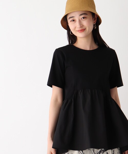 ------------------------------------------------- ▼ お気に入り登録 2500人突破!-------------------------------------------------人気のフハク切替カットソーに半袖タイプが登場!【デザイン】フハクで切り替え、ギャザーを入れたAラインがポイントのデザインカットソー。腰にかかる丈感でボトムを選ばずスタイリングが可能で、フハク切替の贅沢なシルエットと上品な表情がスタイルを格上げ。袖をスッキリとした半袖にアップデートし、夏の主役トップスにアップデート。キレイ目なボトムでオンタイムにも、デニムやカジュアルなボトムでこなすスタイルもおすすめです。【素材】シルクのような、柔らかな肌触りと、光沢感のあるキレイな表面感が特徴のカットソー(スムース)素材に、フハクのパーツをドッキングしたデザインカットソー。カットソー部分はほどよい肉感のあるスムース素材で、しっかり一枚で着られるのもうれしいポイント。またフハク部分はシワになりにくい素材を使用し、ご家庭でのお洗濯が可能な機能性○です。※ホワイト(002)はやや透け感があるため、インナーの着用をおすすめします。※WEB限定サイズ:34(SS),42(LL)【スタッフコメント】sachiko(174 /骨格ナチュラル/イエベ)切り替えデザインがポイントのカットソー。ふんわりシルエットで切り替え部分が高めの位置なのでスタイルアップ効果も◎首の空き具合や袖の長さも1枚で綺麗に着られるデザインです。モデル情報:身長168cm B78 W60 H87 着用サイズ:38(M)店舗へのお問い合わせ商品番号:637-14258●製品寸法:34(SS):着丈71cm B88cm 袖丈21cm 肩幅34cm36(S):着丈72cm B90cm 袖丈22cm 肩幅35cm38(M):着丈73cm B93cm 袖丈23cm 肩幅36cm40(L):着丈74cm B96cm 袖丈24cm 肩幅37cm42(LL):着丈75cm B98cm 袖丈25cm 肩幅38cm備考: