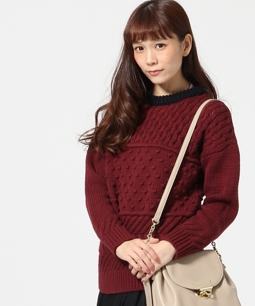 スタイリングの主役になるプルオーバーニット 凹凸感とネックラインの配色がポイントのニット。 3種類の異なる編み地を組み合わせており、スタイリングの主役にんまる一着です。 ドロップショルダーでややゆとりのあるデザインですが、アウターを着易いよう袖のボリュームを抑えているのもこだわりの一つ。 細身のボトムスと合わせるとバランス◎です。 ※店舗、WEBで在庫をお探しの際は下記の商品番号をお申し付け下さい。 商品番号→【555016】
