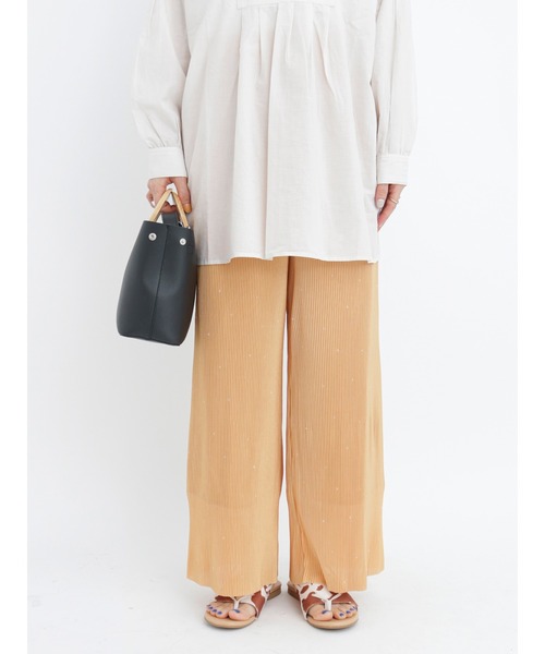 繊細なプリーツが豊かな表情をメイクするパンツ。ドットプリントがさらにキュートなニュアンスをプラスし、印象的なコーデに仕上げます。ゆったりとしたシルエットでノンストレスな穿き心地なのもうれしいポイント。カジュアルにもフェミニンにも着こなせるアイテムです。#イージーパンツ