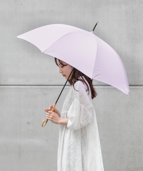 【気分があがるバンブーハンドル】 ロングシーズンで活躍してくれる長傘が到着。 多彩なコーディネートにマッチするニュアンスカラーがGOOD! カジュアルにも綺麗目にも馴染むバンブーハンドルデザインにも注目です。 【紫外線遮蔽率】 約80% (色味によって多少異なりますのでご了承ください。) ※この商品は、傘生地に防水撥水加工を施し、縫製には撥水糸を使用していますが、激しい雨や長時間のご使用では雨が染み込む事がございます。また飾り加工部分(刺繍、ステッチ、パイピング、テープ等)はデザインの特性上、完全な防水撥水が難しい場合があり雨が染みやすいのでご注意ください。 ※ご使用後は陰干しして十分に乾燥させてください。濡れたまま放置すると生地の防水、撥水力の低下や骨の老化につながります。 ※その他お取り扱いに関しましては、商品に付属のアテンションタグをご覧ください。 総重量 : 約310g 仕様 : 晴雨兼用 開閉仕様 : 手開き式 ※商品画像は、光の当たり具合やパソコンなどの閲覧環境により、実際の色味と異なって見える場合がございます。予めご了承ください。 ※商品の色味の目安は、商品単体の画像をご参照ください。