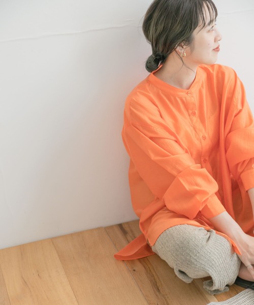 きちんと感のあるバンドカラーデザインのシャツをシアー生地で仕立てました。程よい透け感で涼しげなルックスながら、薄手すぎずハリのある生地感がポイント。今年らしい長め丈とボリュームを持たせたスリーブにも注目です。-----------------------------《スタッフ着用コメント》[スタッフA]年齢 : 20代後半, 身長 : 152cm, 体型 : 普通/骨格ストレート普段の着用サイズ : トップスS~L/ボトムスS【着用カラー/サイズ】BLU/FREE【サイズ感】全体的にゆったりとしたブラウスは、身長152cmでお尻周りがすっぽりと隠れる着丈です◎縦にストンと落ちるシルエットなので低身長の私が着ても着られている感が出ずに着用ができました!【素材感・着心地】少し透け感のある素材ですが、あまりインナーが目立たないので嬉しかったです!深めのスリットが入っていることでブラウスに動きが出て可愛いです(^^)[スタッフB]年齢 : 20代後半, 身長 : 152cm, 体型 : 普通/骨格ストレートパーソナルカラー : イエベ春普段の着用サイズ : トップスS~L/ボトムスS【着用カラー/サイズ】BLU/FREE【サイズ感】身長152cmでお尻周りまですっぽりと隠れる着丈になります!【その他】羽織としても使いやすい生地とサイズ感でロングシーズン着回し万能アイテムです◎[スタッフC]年齢 : 30代前半, 身長 : 161cm, 体型 : 普通/骨格ウェーブ普段の着用サイズ : トップスM~L/ボトムスM【着用カラー/サイズ】BLK/FREE【サイズ感】ゆったりとしたサイズ感でヒップもすっぽり隠れる着丈です。【素材感・着心地】程よい透け感が今年らしく日除けや冷房対策にぴったりです!-----------------------------※この商品は、ファッション性を重視し、薄く繊細な素材を使用しています。強い力がかかると、縫い目が裂ける場合があります。※素材の特性上、シワになりやすいのでご注意ください。※その他お取り扱いに関しましては、商品に付属のアテンションタグをご覧ください。※商品画像は、光の当たり具合やパソコンなどの閲覧環境により、実際の色味と異なって見える場合がございます。予めご了承ください。※商品の色味の目安は、商品単体の画像をご参照ください。▼お気に入り登録のおすすめ▼お気に入り登録商品は、マイページにて現在の価格情報や在庫状況の確認が可能です。お買い物リストの管理に是非ご利用下さい。-----------------------------透け感:あり伸縮性:なし裏地:なし光沢:なしポケット:なし-----------------------------