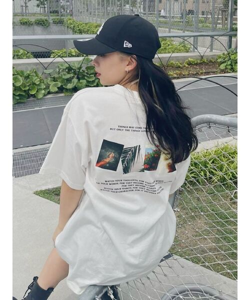 背中のグラフィックがポイントのBIGTシャツです。 ゆるっとしたサイズ感なので小柄な方はチュニック丈で着用できます。 背中のグラフィックは夏らしいフォトを使用しています。 カラーによって異なるグラフィックが入っています。