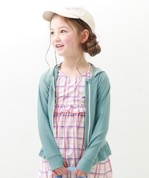 とことんかわいい『裾フリル長袖ジップラッシュガード』 裾のフリルや鮮やかなカラーが魅力。 スポーティーすぎるデザインは少し苦手、という女の子にぴったりなアイテムです。 親指が通せる指穴付きで手の甲までしっかり紫外線をガードできます。 毎日の紫外線からお子さまの肌を守れるように、遮蔽率90%以上の素材を使用。 水の中での着用はもちろん、水場でのレジャーシーンにもおすすめ。 水着やラッシュガード、プールバッグやタオルまで、様々なスイムグッズをご用意。 夏のおしゃれをdevirockでめいっぱい楽しんでください。 ■素材 柔らかな肌ざわりをしたポリエステルストレッチ素材 さらっと柔らかな肌ざわりが特徴。 程よいストレッチなので、体にフィットし着脱しやすい素材です。 伸縮性:あり ■洗濯方法 手洗い可 / 漂白剤使用不可 / 乾燥機使用不可 / 日陰つり干し/ 洗濯ネット使用 ■ご注意事項 ・摩擦や水、汗などで色が移ることがあります。ご注意ください。 ・平置きにて採寸しているため、サイズや形に多少の誤差が生じる場合があります。あらかじめご了承ください。 ・伸縮性のある素材は、砂が生地の隙間に入りシミ状に見える場合がありますので、万が一砂が入り込んだ場合は、乾いた後、生地を伸ばして叩くと落ちやすくなります。 ・高温下や濡れた状態で袋や鞄にいれて長時間放置と、色移りやプリント剥がれの原因となるためご注意ください。 ・生産時期により、多少色味が異なる場合がございますが、素材・サイズ等の品質に違いはございません。 ー devirockについて ー 子育てがもっと楽しくなる社会を目指し、親と子が感じる課題を解決する"新しいあたり前"を提案しています。 男の子・女の子のデイリーウェアを中心にラインナップ。ベーシックからトレンドまで幅広いデザインと、ベビーからキッズまでの豊富なサイズ展開が魅力の子供服ブランドです。