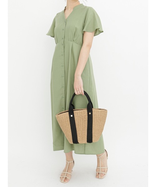 リネン混素材が清涼感を漂わせるワンピース。 高めのウエスト切替とタック入りでメリハリのある美スタイルをメイク。フレアスリーブが気になる二の腕を華奢な印象に見せてくれるのも嬉しいポイントです。 シンプルなデザインと落ち着いたカラーで着回しもしやすく、デイリーユースにも重宝しそうな1着。 <コーディネート モデル:163cm> ※商品画像は、撮影環境やお客様のご利用のPC・スマートフォンのモニター環境などにより実物と色味に差異がある場合がございます。