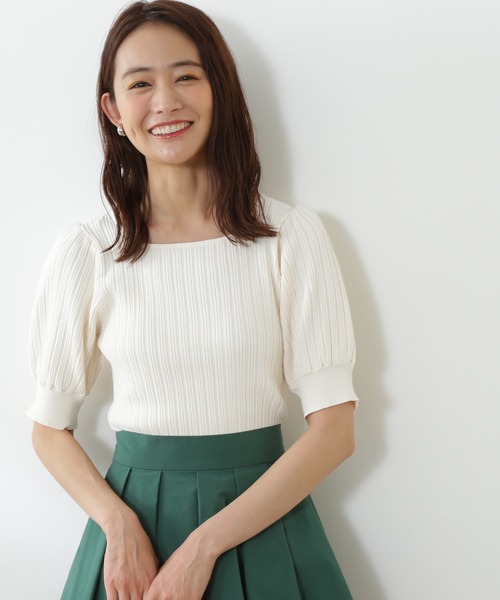 ふんわりとしたパフスリーブが主役の変形リブニット。スクエアネックでデコルテが綺麗に見え、二の腕をカバーする袖丈、変形リブの編み地でボディラインをすっきり演出します。パフスリーブは袖口部分がフィットするので、スリーブラインを上品に見せてくれます。ハイウエストのスカートやシンプルなパンツスタイルとも合わせやすく、ONにもOFFにも活躍できます。