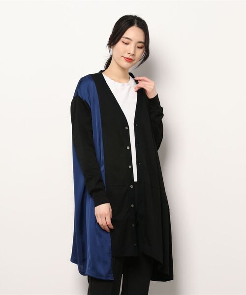 しっとりとした素材感のファインスムース。 選び抜いた糸を国内有数の工場で編み上げました。 やや光沢があり、しっかりとした素材感です。 大人の女性に着ていただきたいシリーズです。 長めの着丈のデザインカーディガン。 gommeのカーディガンは着やすいと、毎シーズン人気です。 こちらは別素材と切り替えたデザイン。 同色で切り替えているので、着やすく大人な雰囲気。 お尻までフォローしてくれるので、どんなコーディネート にもマッチしますよ。 実店舗では、試着されるとほとんどの方が購入されるそうです。