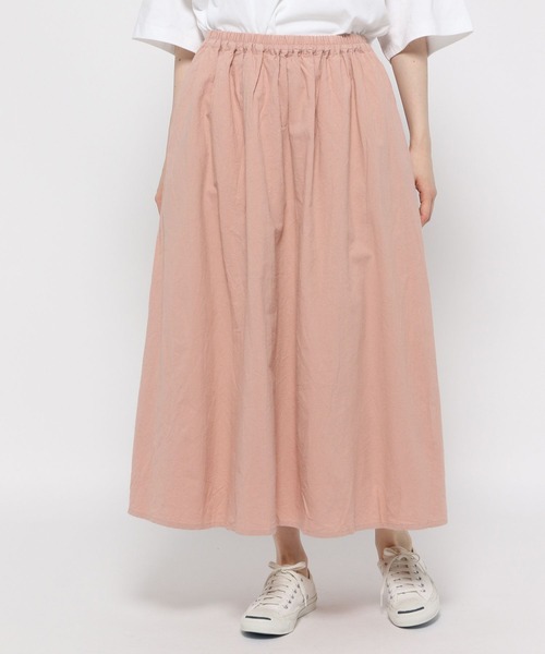 オールシーズン履けるロングスカート ほどよくハリのあるコットン生地にヴィンテージウォッシュ加工を施し、 独特のシワのある風合いをプラスしたスカート。 ウエストからギャザーを入れたAラインシルエットがカジュアルな素材にフェミニンなエッセンスをプラス。 丈が長いため一枚でもはきやすく、季節を問わず使いやすいアイテムです。 ウエストはストレスフリーな総ゴム仕様で内側に調整紐付き。 【ichi(イチ)】 「着て体に馴染み、色あせていくことで自分らしい色に変わっていく服、着続けることが喜びとなる服」 九州福岡での生活を拠点にして生み出されるブランド「ICHI(イチ)」。 着て洗うことでテキスタイルの表情や風合いの変化を楽しめる一着。 生地の変化と同時に、服が自分の体のラインに馴染む心地よさを感じてください。