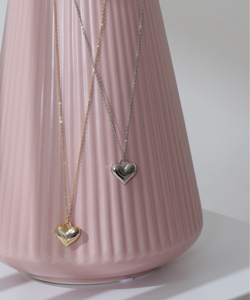 ぽってりとしたハートモチーフが愛らしいネックレス。華奢なチェーンのトップで揺れる立体的なハートモチーフがポイントになります。上品なつや感があり、女性らしい表情でデイリースタイルに合わせられるアクセサリーです。
