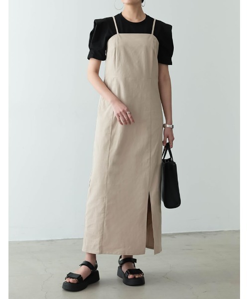 [低身長サイズ有] 大人の美シルエットを演出するキャミワンピース 今季トレンドのキャミワンピース。 足元には深めのスリット入りで、抜け感のある印象に。 すとんと落ち感のあるIラインシルエットでスタイルアップ効果も◎ ストレッチ性のあるコットン素材で、見た目以上に着心地楽ちんなのも嬉しいポイント。 ウエストはバックゴムデザインで無理なくスッキリとしたシルエットが叶います。 肩紐はアジャスター付きで、長さもお好みの丈感に調節できます。 シーズンレスにご着用でき、きれいめからカジュアルまで、幅広いスタイリングをお楽しみいただけます。 ■C(コンパクト)サイズ対応 身長150~155cmくらいの方がバランスよく着ていただける丈感のリエディオリジナルサイズです。 ⇒お買い求めの際は「SHORT」をお選びください。 素材・着用感 程よくストレッチ性のあるコットンブレンド素材 ※実際にお届けする製品はスリット長さがモデル着用分より3cm長くなります。 ■モデル着用写真は撮影環境により、 多少実際のカラーと異なる場合がございます。 お気に入りショップにご登録いただきますと、 ショップニュースを、いち早くお届けいたします。