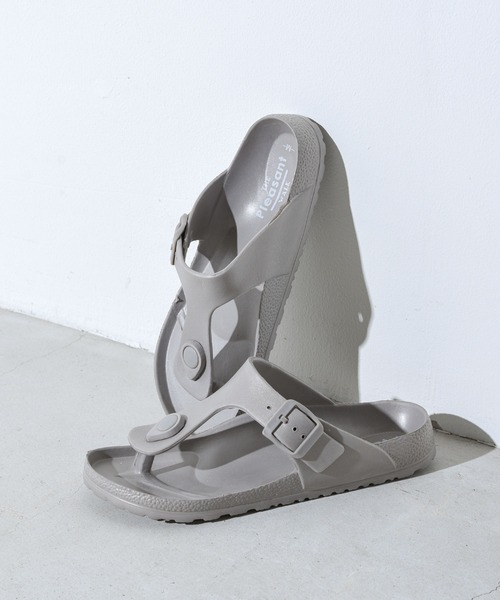 プチプラが嬉しい!シンプルで使いやすい、ど定番のEVAサンダル。 夏に欠かせないアイテム、サンダル。 使いやすいEVA素材のサンダルはいかがですか? デザインは定番のトング型。 夏のコーデにぴったりハマるデザインです。 シンプルなデザインながら、足底は凹凸があり、足裏にしっかりフィットしてくれます。 トング部分も柔らかい素材になっているので 長時間履いても痛くなりにくいのがポイントです。 クッション性のあるフラットソールで疲れにくいのも嬉しいですね。 素材は扱いやすいEVA素材。 水に濡れてもOKなので海やプール、川遊びなどのレジャーシーンにもぴったりです。 汚れたらさっと水洗いできるのも嬉しいポイントですね。 ストラップ部分は調節可能なのでご自身の足の形にぴったりフィットさせて履くことができます。 カラーはアイボリー、グレー、ブラックの3カラー。 どのカラーも使いやすいお色味です。 (オススメコーディネート) シンプルなTシャツ、デニムコーデに合わせるのが最高にオシャレな着こなし。 ポケTやヘンリーネックTなどのカジュアルアイテムに合わせるのがポイントです。 ブラウスやシャツ類との相性も抜群。マニッシュな着こなしが完成します。 とろみ系シャツやボリューム袖カットソーなどの女性らしいアイテムと合わせても◎ シャツワンピやTシャツワンピなどのワンピース類と合わせれば綺麗めなサマーコーデに。 スタンダードなアイテムなので、パンツスタイルからスカートコーデまで合わせていただけます。 デニムやチノパンを合わせればボーイッシュなコーデに。 プリーツスカートやロングスカートと合わせれば女性らしいコーデが完成します。 シンプルなデザインなので、ポニーフックやヘアゴムなどのヘアアクセでアクセントをつけるのもオススメ。 パールネックレスや大振りピアスなどを合わせてもスッとまとまります。 コインネックレスやボールチェーンネックレス、大振りなピアスやパールネックレスなど トレンドのアクセサリーと合わせるのもオススメです。 バッグにカゴバッグやメルカドバッグなどを組み合わせてサマーコーデを楽しんで。 カンカン帽やバケットハット、キャップやペーパーハットなどの帽子類と合わせるのもお薦めです。