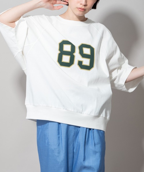 □2022 SPRING & SUMMER COLLECTION□ ◆スウェットトップスのように見えるナンバープリントTシャツ ◆ <MATERIAL> 40/2 MVS天竺(22SS1stのMN221U08と同素材)カジュアルな雰囲気を残しながらも綺麗めな表面感が特徴のMVS天竺です。 通常よりも洗濯に強く、毛羽立ちはもちろん寸法変化も抑えられた程良い肉感の40/2のコットン天竺です。 キレイ目ですが程良いカサツキ感もありSSにピッタリな素材感に仕上がっています。 洗いでは製品でボールバイオWASHを行なっており、薬剤で生地の表面を分解し、表面の綿の毛羽を取りながら柔らかくし、ボールでアタリをつけ、古着風に仕上げています。 プリントはラバープリントに顔料プリントを混ぜた半ラバープリントです。 通常のラバープリントに比べ、光沢感としっかりプリントされた感じを抑えたこなれた雰囲気に仕上げています。 半ラバープリントなので濃色ボディーの上に淡色をプリントできるメリットもあり、いつもとはまた違った雰囲気に仕上げています。 WASHOUTを行い、ほんのり色味を薄れさせ、古着風にしております。 双糸なので斜行もしずらく、元々キレイめな素材感なので加工後もそこそこキレイな雰囲気を残したまま着られる大人のTシャツに仕上がっています。 <DESIGN> 裾にフライスが付いたスウェット型のデザインTシャツです。 シンプルなTシャツですがカマ底にフライスでマチの切り替えを入れたり、振りステッチを入れたりと、さりげなくデザインを効かせています。 袖はヒジが隠れる大人袖で、気になる二の腕やひじをカバーしてくれます。袖口をロールアップして着こなしてもバランスよく、ラフなこなれ感も出せます。 夏らしく、デニムに合わせてカジュアルに着こなしたり、コンパクトな丈感と裾リブによる少し丸みのあるデザインなので、ロングスカート等と合わせてもメリハリのあるバランスのとれたコーディネートができます。 プリントは半ラバープリントの雰囲気にマッチしたカレッジ風のナンバープリントを施してます。 カジュアルになりすぎないシックな色合いが大人の方でも取り入れやすく、MN221P49の配色パンツやMN221P62のカラーパンツ等と合わせてレトロでカレッジ風のスタイリングが今年のおすすめです。 品番:MN221U40と同型です。 <COLOR> ■ホワイト:クリアな印象のホワイトにグリーンとイエローのプリントがポイントに。ベーシックなカラーなのでコーディネートしやすいアイテムです。 ■グリーン:トレンド感とクラシカルなイメージの両方が揃うグリーン。淡いイエローベージュに濃い目のブラウンの縁取りのナンバープリント。一枚で着るのはもちろん、白いシャツの上から重ねてレトロなカレッジ風に着こなすのもよさそうです。 ■ネイビー:しっかりと濃い目のネイビーにレッドの縁取りがポイントになったナンバープリント。カレッジシャツ風の配色が可愛い一枚です。 *光のあたり具合いやパソコンなどのモニター環境によって実際の色味と異なって見える場合がございます。予めご了承ください。 *お取扱いについては、商品についております品質表示、アテンションタグにてご確認ください。 洗濯:洗濯機洗い可 .............................≪INFORMATION ≫............................ ▼商品のお気に入り登録▼ 『♡』マークを押してお気に入り登録して頂いた商品は、セール開催の通知やクーポン発行などのキャンペーンなど、お得な情報をいち早く受けとる事が出来ますので、ぜひご登録ください。