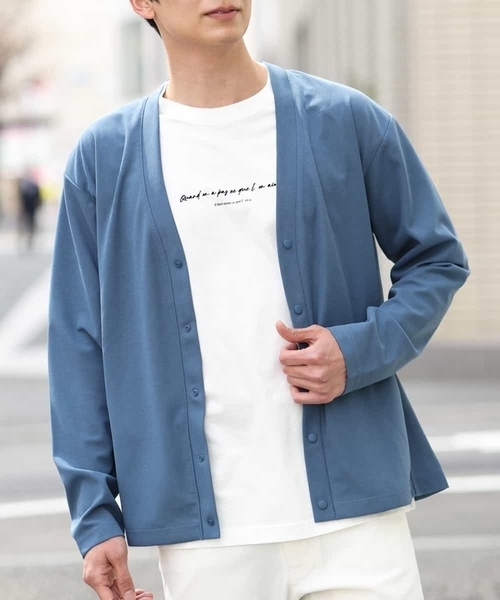 ◆冷房対策・テレワークにも最適。 クリーンな印象の梨地カーディガン。◆ 絶妙なくすみカラーの新色「グレイッシュミント」が登場しました! 【イージーケア/洗濯機で洗える/接触冷感/防シワ/ストレッチ】で多機能のさらっとした肌触りな梨地素材を使用しているので蒸れずに快適。 着脱イージーなスナップボタンが機能的でさり気ないデザインアクセントになっており、見た目もサイドシームポケットでスッキリとした印象に仕上げています。 シャツ合わせならテレワーク、ロゴプリントカットソー合わせならワンマイルウェアにも使用できる汎用性の高く夏服におすすめのアイテムです。 持ち運びしやすいため、夏の冷房対策としても使えます。 同素材のTシャツも展開しているため、今季トレンドのアンサンブルコーデもオススメです。 同素材Tシャツ商品番号:KHKGP50039 ※お使いの液晶環境により、色味が多少異なる場合がございます。予めご了承ください。