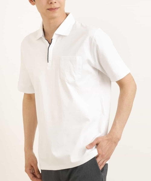 ◆毎日を快適に過ごせる【接触冷感/抗菌防臭/UVカット/毛玉になりにくい】機能付きのオンオフ兼用スキッパーポロシャツ。◆ 人気のシルケットスムース素材を使用したきれいめポロシャツ。 スキッパーデザインのため、首元がスッキリ見えます。 袖にスリットがあるため、腕周りもきつさを感じずらくしています。 ビジネスでも使いやすい大人にも嬉しいデザインです。 スラックスボトムでビジネスシーンにもハマり、カジュアルボトムでデイリーシーンにも夏服にピッタリなポロシャツです。 ※52・XXLサイズはWEB・一部限定店舗販売です。 ※お使いの液晶環境により、色味が多少異なる場合がございます。予めご了承ください。