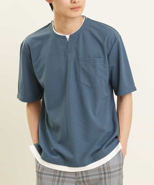 ◆夏に嬉しい【イージーケア/洗濯機で洗える/接触冷感/防シワ/ストレッチ】多機能素材を使用したフェイクレイヤードカットソー。◆ 【デザイン】 襟元のスキッパーデザインは首元がすっきり見え、フェイクレイヤードの白いジャージー素材が見えることでさわやかな印象に仕上げました。 手軽に1枚でレイヤードスタイルが完成し、動いてもベストなレイヤードデザインが崩れないのもうれしいポイント。いつでも格好良さをキープしてくれます。 又、イージーケアでシワになりにくいため、ご旅行や、ちょっとした着替えを持ち運ぶのにもオススメです。 シャリ感のあるドライタッチな素材なので、肌にまとわりづらく、サラッと涼しげにご着用いただけますので夏服にオススメです。 【スタイリング】 夏の焼けた肌になじむ、絶妙なニュアンスカラーが簡単にこなれ見えして、オシャレに! 白パンと合わせた夏らしいスタイリングが一押しです。 同素材でカーディガンも展開しており、今季トレンドの同色アンサンブルコーデもオススメです。 同素材カーディガン商品番号:KHCGP40049 ---------------- 透け感:なし 裏地:なし 伸縮性:なし 光沢感:なし 生地の厚さ:やや薄手 ---------------- ≪お気に入り登録機能の使い方≫ ■商品のお気に入り登録(ハートマークをクリック) 再入荷通知や値下げ等、お得なご案内を受けることができます。 ---------------- ※お使いの液晶環境により、色味が多少異なる場合がございます。予めご了承ください。 ※サンプルにて撮影しておりますため、お届けの商品と仕様が若干異なる場合がございます。予めご了承ください。