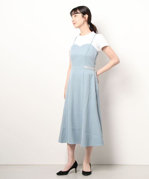 【アイテム説明】 すらっとした印象を与えるマーメイドデザインのワンピースです。 華奢な肩ひもや程よく広がった裾がフェミニンな印象に。 ブラウスを合わせたガーリースタイルもおすすめです。 後ろ側のみゴム入りの仕様でスッキリとしたシルエットに仕上げました。