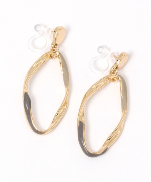 ピアスホールが開いていなくてもつけられる、ノンホールピアス。 変形ドロップのデザインにさりげないカラーがオシャレなアイテム。 耳が痛くなりやすい通常のイヤリングよりも、ラクチンなつけ心地です。v