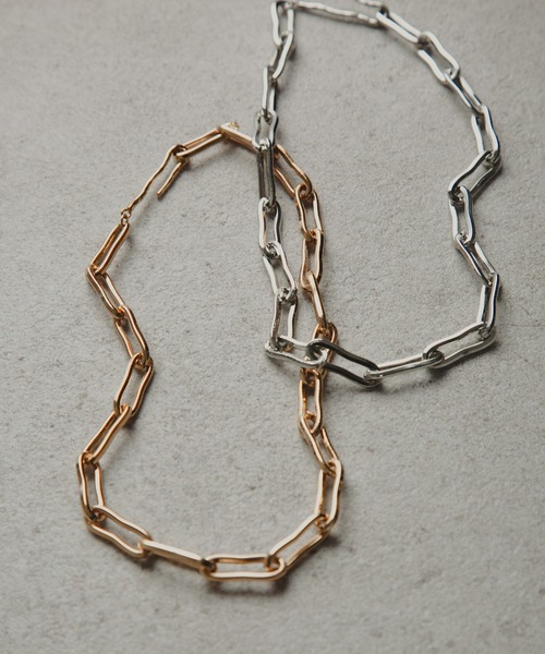 デザインチェーンが重厚感のあるネックレス。1本で存在感があるのでコーディネートに取り入れやすいのも◎ 真鍮なので見た目よりも軽くてつけやすさ◎ チェーンネックレス/チョーカー/シルバーネックレス/ゴールドネックレス ※金属アレルギー対応商品ではございません。 ※サイズに多少の誤差が生じる場合がございます。 ▼商品のお気に入り登録(ハートマークをクリック)完売カラーの再入荷通知や、ラスト2点の通知、セールの通知も受けることができます。 ▼ブランドのお気に入り登録新商品や再入荷など、いち早くブランドのお得な情報を受け取ることができます。