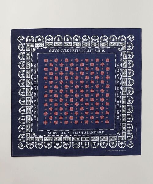 1950年~70年くらいに見られる希少なバンダナ柄を組み合わせたSHIPSオリジナルのバンダナ。 「本藍」の染料をプリント染料にしてプリントを行っているため、「藍染め」と比較して色落ちが少なく、リアルインディゴの風合いが楽しめる商品となっています。