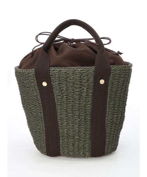 ペーパー素材で編み上げた夏らしいかごバッグ。トートバッグのようなテープハンドルで程よいカジュアル感をプラスしました。インナーは巾着仕様で中身が見えず、開閉も楽ちん!マチ付きで収納力も良く、デイリーはもちろん、リゾートやお出かけにも重宝します。【その他採寸】F よこ:21-33cm