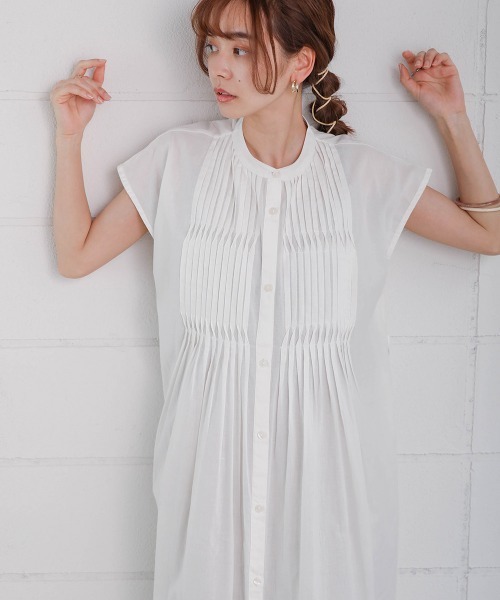 ●Bab● ~Made in India~ ■POINT 胸元の繊細なピンタックが印象的なワンピース。さらっとした綿素材でとても涼し気。フロント部分はボタンで開閉出来るので、羽織として着用することも可能。お袖も二の腕が綺麗に見えるように計算された袖丈。ウエスト位置も高めなのでスタイルアップ効果も!ウエストには共布のリボンがセットでついているので、気分に合わせてキュッと結んだり後ろで結んだりとアレンジもできます。 ■FABRIC インドならではの柔らかい綿を使用。通気性の良い綿素材なので夏でもさらっと着用していただけます。 ■COORDINATE 胸元が印象的なので1枚で着用するだけで着映えします!(1枚で着用する際はペチコートの着用をお勧めいたします)前を少し開けて、ボトムを見せるスタイリングもおすすめ!もちろん全部開けてタンクやキャミをインに合わせてスタイリングも◎。着方次第でイメージが変わります! ◆Indiaシリーズ◆同素材で別型も展開がございます。ぜひご覧になられてください! ・821037 / スモッキングシャーリングワンピース ・811125 / キャンブリックスモッキングブラウス ・821031 / レース×ドビーシャツワンピース ………………… 透け感:あり 裏地:なし ………………… ※撮影環境により、多少実際のカラーと異なる場合がございます。また、携帯やスマートフォン、パソコンなどの画面上と実物では多少色が異なって見える場合がございます。ご了承下さいませ。 ※画像の商品はサンプルのため、実際の商品と若干仕様が異なる場合がございます。 ※濃色品は、過度な摩擦や濡れた状態での摩擦により、色落ち・色移りをする恐れがあります。 ※この商品は、素材の特性上、洗濯の際に多少の縮みが生じる恐れがあります。洗濯後は形を整えてから干してください。 ※その他お取り扱いに関しましては、商品に付属のアテンションタグをご覧ください。 ★商品のお気に入り登録 再入荷やラスト1点のお知らせ、セール情報などお知らせを受け取ることができます! ★ブランドのお気に入り登録 新商品や再入荷などのお得な情報を受け取ることができますので、是非ご登録ください。