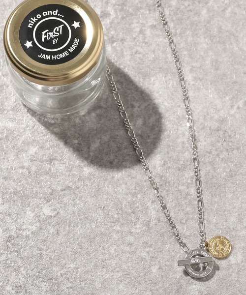 niko and ... ×First by JAM HOME MADE 初のカプセルコレクション はじめてのアクセサリーにもおすすめのアイテムがラインナップ 今コラボレーション企画のオリジナルのダブルネーム入りのコインチャームを作成。 ミニマムなデザインまがら、ゴールドカラーで存在感は抜群です。 ネックレスはフィガロチェーンとマリンチェーンの2種類を作成。 留め具はTバーとマンテルを採用し、着脱のストレスをできる限り軽減。 特徴的なデザインもコインチャームがしっかりまとめています。 収納用の巾着袋と特別なコラボレーションロゴをあしらったジャム瓶が付属。 ディスプレイもお楽しみいただけます。 ユニセックスでの着用も可能。 大切な方へのギフトアイテムとしてもおすすめのシリーズになっております。 ○別注のポイント niko and ... とFirst by JAM HOME MADEの初のカプセルコレクション。 FirST by JAM HOME MADEのコラボレーションカプセルコレクションは今回が初となります。 これを機にリニューアルしたロゴを、コラボレーションロゴに採用し、大胆に商品にあしらいました。 【FirST by JAM HOME MADE】 -concept- 『FaST』で『FirST』なJAM HOME MADE。 『あたらしいアクセサリー』をJAM HOME MADEで・・・ 『はじめてのアクセサリー』をJAM HOME MADEで・・・ JAM HOME MADEは、思いやりと笑顔を提案します。 -history- “JAM HOME MADE”は1998年に設立したユニセックスのジュエリー・アクセサリーブランドです。 ブランド名のJAMは、JAM SESSIONのJAMに由来します。JAM SESSIONとはジャズミュージシャンたちが集まって即興演奏する事で、現在ではジャズに関わらず様々なジャンルの音楽や芸術までをさし、その内容は空間に合わせて毎回異なるアレンジ、異なるセットで行われる即興演奏に主眼が置かれています。 2013年に、『FaST』で『FirST』なJAM HOME MADEとして、FirST by JAM HOME MADEの展開開始しました。