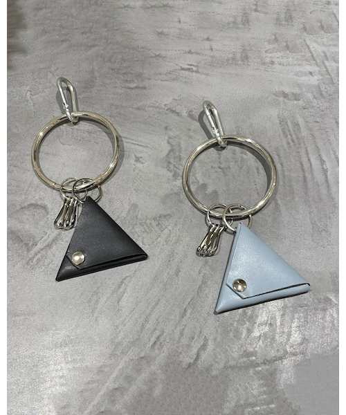 三角形のコインケース&キーリング。 YohKiのブランドイメージである三角形をモチーフにデザインされたコインケースと、大きなフープのキーリングが特徴的。 カラビナとキーホルダー3本が付いており、実用性も備えつつ、ベルトループやカバンなどにつけていただくとコーディネートのアクセントにする事もできます。 ※コインケースは非常に柔らかいフェイクレザーを使用しております。コイン以外のものや、尖ったものを入れる場合に破損する場合がありますのでご注意ください。 【カラー】 BLACK、LIGHT BLUE 【サイズ】 FREE 【素材】 コインケース部分: 合成皮革 【寸法】 コインケースの一辺の長さ : 8cm