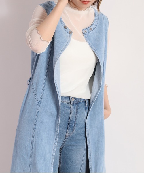 爽やかなカラーが可愛いシアーインナー登場 ◇Point◇ 毎回人気のシアーメッシュインナーの新作です。 襟元や袖口のメローが目を惹くデザインで、一枚でさまざまなアイテムと合わせることができます。 ◇Material◇ 柔らかく伸縮性もあり、着心地の良い素材。 レイヤードスタイルのインナーとしてはもちろん、 夏はキャミなどに重ねて抜け感のあるスタイルにも◎メインの着用もおしゃれにきまります。 ◇Coordinate◇ どのカラーもデニムとの相性抜群◎ クロシェベストを重ねたり、ジレやロングベストを羽織った大人カジュアルスタイルもおすすめです。 ※照明や天候により実際の色味と異なって見える場合がございます。 ご了承くださいませ。