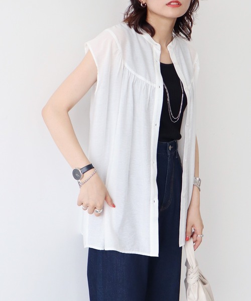 さりげないスタンドカラーに、たっぷりと前後に寄せたギャザー切り替えがフェミニンなブラウス。しっとりとしなやかなレーヨン混の美しいドレープが女性らしさを後押し!肩先までの着丈で一枚でも上品に着こなせるのもポイントです。ボトムスを選ばず、幅広いスタイリングにマッチしてくれます。透け感[有り]裏地[無し]伸縮性[無し]光沢感[無し]生地の厚さ[薄手]付属品[無し]ポケット[無し]● earth music&ecology ●(アース ミュージック&エコロジー)人とライフスタイルと環境に寄り添い、エントリーアイテムとトレンドアイテムをMash upさせ、いつでも心地よく過ごせる、自由な大人の女性を表現します。▼ 商品のお気に入り登録がおすすめです ▼商品ページ内のハートマークをクリック。完売時の再入荷や、最後の1点の通知、コーディネート画像がアップされたとき、お得なお値下げの際の通知を受ける事ができます。【お知らせ】ページでも通知が確認できます。