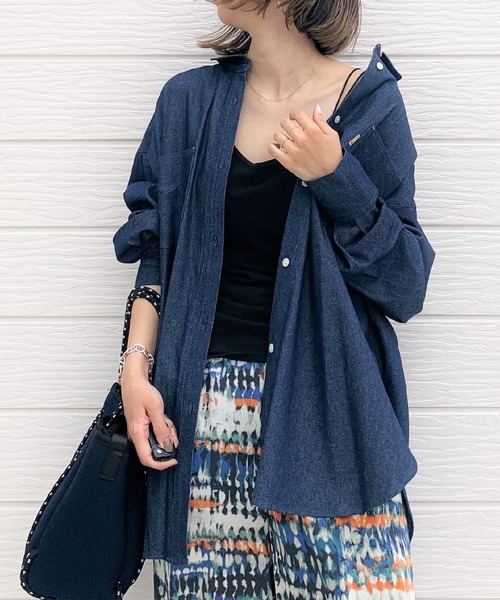 薄手のデニムシャツです。ボタンを留めてトップスとして着るのはもちろん、羽織としてアウター感覚で使っていただくのも◎オーバーサイズに仕上げているのでこなれ感を演出してくれます。さり気ないおしゃれポイントとして、ライトブルー→オレンジ、ネイビー→ライムのカラーステッチにしています。《インフォメーション》◆商品のお気に入り登録完売していても再入荷時に再入荷通知を受け取ることができますので、是非ご登録ください。◆ブランドのお気に入り登録新商品や再入荷などの情報を受け取ることができますので、是非ご登録ください。