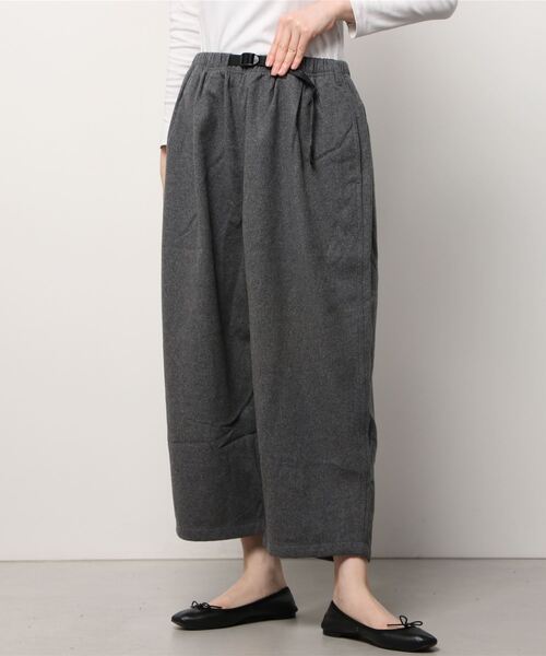 GRAMICCI/グラミチ WOOL BALLOON PANTS ウールバルーンパンツ冬期に適した暖かいウール混の新型バルーンパンツが登場。ブランドのルーツであるクライミングシーンにおける機能性を残しつつ、現代のライフスタイルに合わせた丸みのあるワイドなシルエットが特徴の新型パンツ。足のラインを拾わず体型をカバーしてくれるリラックスした履き心地が魅力。裾にタックを入れて余計な広がりを抑えたアーティスティックなデザイン。定番のウール混素材は家庭での手洗い洗濯ができデイリーケアも簡単です。裏付きでウール特有のゴワつきがなく快適な履き心地です。【GRAMICCI/グラミチ】「グラミチ」は、1970年代、アメリカで“ストーンマスター”と呼ばれ、ヨセミテロッククライミングをリードしてきた一人のロッククライマー、マイク・グラハム氏が、当時のクライミングウエアでは満足できず、独自の手法で機能性に富んだウエアづくりに着手し、1982年にカリフォルニアの小さな倉庫で立ち上げたブランドです。グラミチパンツとグラミチショーツは、独特の機能性、180度自然な開脚を可能にした「ガゼットクロッチ」や片手で簡単に調節できる「Webbingベルト」が装備されています。