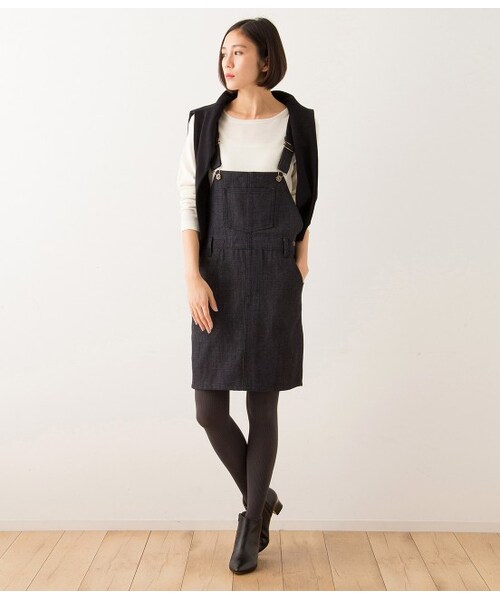 デニム素材のサロペットスカートは、優しい風合いが特徴的な一着。スカート丈の長さやヒップまわりのシルエットにもこだわり、体型カバーも期待できるアイテムです。しっかりとしたデニムの生地感ながらも、光沢感とすっきりとした仕上がりは品のある一点。シックなネイビーの色合いは、大人カジュアルを演出してくれます。