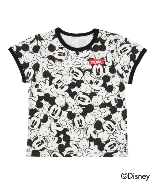 総柄の顔モチーフのグラフィック。BLK=ミッキー、PINK=ミニー、PUR=ディジー。とカラーでキャラクターの雰囲気を表現。S/S TEEは少し袖の短いオシャレなTEE。