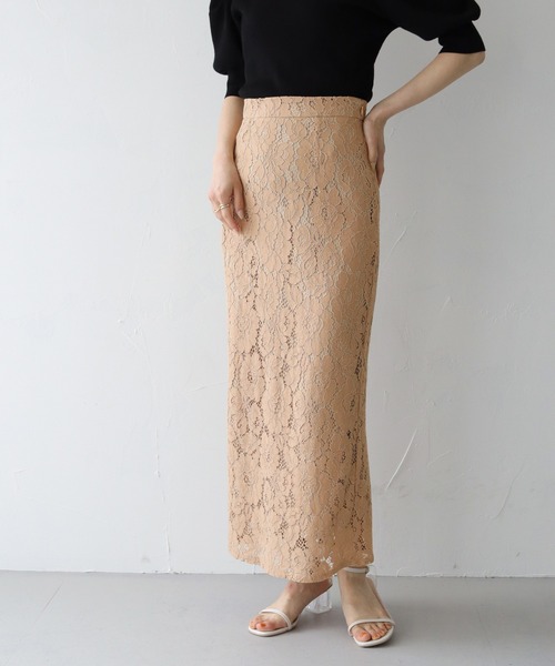 品よく女性らしさを添えるレースセミタイトスカート品見えするコードレースが女性らしさを添えるスカート。裏地がついているので一着で安心してご着用頂けます。やや大柄なフラワー刺繍は微配色になっておりさり気ないアクセントをプラス。ウエストは後ろ中央部のみゴム仕様となっておりデザインを崩さず着心地も兼ね備えています。サイドコンシールファスナーで更に着脱楽々に。バック裾にスリットを入れることで抜け感もプラス。すっきりとした綺麗なシルエットでありつつタイト過ぎないサイジングになっているので着心地楽々なのにスタイルアップしてくれる優秀アイテム。オフィスはもちろん、ちょっとしたお出かけやパーティーにも映える一着です。≪Styling≫きれいめブラウスと相性◎スカートだけで主役級の存在感なのでシンプルトップスと合わせるだけでも様見え。シーズンレスアイテムなので、冬はニットと合わせるのもオススメ。オフィスはもちろんのこと、オケージョンにも使える大人の女性なら一着は持っておきたいスカートです。≪Fabric&Detail≫伸縮性・・・なし透け感・・・レース:透け感あり/裏地:透け感なし厚み・・・★★☆☆☆裏地 あり▼《お気に入り登録》のおすすめ▼【商品のお気に入り登録】気になるアイテムのハートマークを押してお気に入り登録すると完売カラーの再入荷通知やラストの通知、セール通知を受け取ることができます。【ブランドのお気に入り登録】新商品や再入荷など、いち早くブランドのお得な情報を受け取ることができます。ぜひご利用頂き、お買い物をよりお楽しみください。※撮影場所により、実際の色味と若干異なる場合がございます。 あらかじめご了承くださいませ。