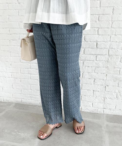 イージーな透かし編み柄ニットパンツ 【デザイン】 ウエストゴム仕様で、楽でイージーに着れるニットパンツ。 膝のラインをすっきりさせ、着用した時に足がきれいに見えるパターンに拘っています。 夏に向けて涼しくイージーに着こなせ、カジュアルなスタイリングにおすすめ。 チュニックデザインブラウスやプリントTシャツなど、ニットパンツを合わせるだけでおしゃれに決まるパンツです。 ※ポケット数:横×2 【素材】 ポリエステルのニット素材を透かし柄編みに仕上げた見た目もキャッチーな素材。 さらっとドライタッチなので、これからの季節にもぴったりの素材感です。 ストレッチ性のある裏地付きなので、履き心地も良く、安心して着用して頂けます。 シワになりにくくイージーケアも可能。 マシンウオッシャブル機能付きでご自宅でのお洗濯も可能なのも嬉しいポイントです。 ※裏地あり ※オフホワイト(003)はやや透け感があるため、インナーの着用をおすすめします。 --------------- 【C(シー) OPAQUE.CLIP】 「PLAYFUL FEMININE」をキーワードに、天然素材と美しくポジティブなカラー、ワクワクするようなディティールや、ミックス感のあるスタイルなどファッションの楽しさを詰め込んだ新レーベルです。 こちらの商品は主に夏に着用いただける商品です。 モデル情報:身長163cm B80 W60 H89 着用サイズ:38(M) 店舗へのお問い合わせ商品番号:637-64041 ●製品寸法: 36(S):総丈94cm W61cm H101cm 股下62cm 渡り幅32cm 裾幅24cm 38(M):総丈96cm W64cm H104cm 股下63cm 渡り幅33cm 裾幅25cm 備考: