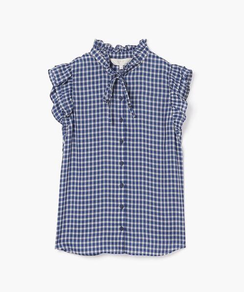 キュプラの繊細な糸で織られたシルクのような肌触りのフリルスリーブブラウス。衿と袖のフリルがフェミニンで可愛らしい着こなしのポイントに。襟元のリボンできちんと感も演出します。裾のラインが程よくカーブしているので、アウトしてもスタイル良く着こなして頂けます。キュプラ100%ですが、ご家庭で手洗い可能な素材なのも嬉しいポイント。※商品にアテンションカードや品質表示タグが付属している場合は、必ずご確認の上、お取扱いください。 (##)38(M):肩幅34、バスト100、袖丈6、ゆき丈-、着丈-、身丈6136(S):肩幅33、バスト94、袖丈6、ゆき丈-、着丈-、身丈61