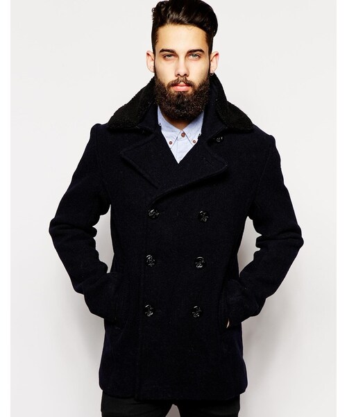 Pea coat by Schott Warm, textured, felt-touch fabric Button-off collar Double breasted button closure Side pockets Inner pouch pocket Fully lined Regular fit - true to size Specialist dry clean 80% Wool, 20% Nylon Our model wears a size Medium and is 181cm/5'11.5" tall