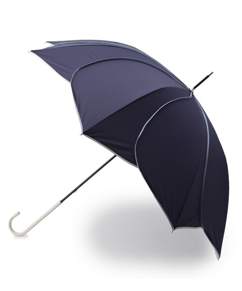 DRESKIP/because(ビコーズ) 長傘 【デザイン】 パイピングを施したお花を思わせるフォルムのお洒落なアンブレラ。 パイピングを施したさりげないバイカラーデザインに仕上げています ハンドルは細身の華奢なデザインで上品さをプラス。 UVカット効果も期待できるので、晴れの日でもお使いいただける便利なアイテムです。 ※この製品は、太陽光線中の紫外線(UV)を通しにくくします。この効果は永久的ではありません。 店舗へのお問い合わせ商品番号:F97-44034 ●製品寸法: 00:全長89cm 直径95cm 持ち手21cm 親骨の長さ58cm 備考: