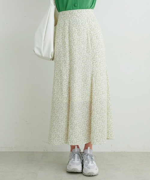 やさしいカラーのフラワープリントが主役のマーメイドスカート。腰まわりをすっきり、ウエスト後ろにゴムを入れて穿きやすく仕上げています。 膝あたりで少しくびれを作り、裾にフレアの分量がでる可愛いシルエットです。 夏にぴったりの軽い素材を使用しているので、Tシャツやノースリーブトップス、半そでカーディガンをトップスのよにうに着るなど、今から長く着回しできます。