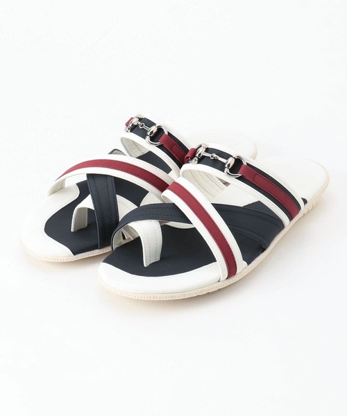 肌触りの良いフェイクヌバックの合成皮革を採用したビットサンダル。白とネイビーの爽やかな配色使い、ボルドーの配色アクセントで夏らしさを演出した色展開。ブラックを組み合わせた配色は大人な印象。最終色#92はボタニカル柄のプリントを施す事でリゾート感のある仕上がり。馴染み系の色使いなのでカジュアル過ぎず、大人っぽい雰囲気に仕上げています。天板部分にはクッションを効かせ履き心地、FIT感も高めています。