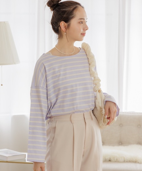 popなカラーが目を惹く、ボーダーカットソートップス♪ゆるっとした身幅と長すぎず短すぎない絶妙な着丈で、どんなボトムスにも合わせやすい優秀なアイテムです。名前の通りicecreamのようなカラーが可愛いボーダーの配色を選びました。明るいカラーが今の季節にぴったりです。薄手の生地感でこれからの季節にさらっと1枚でもレイヤードにも使えるアイテムです。やわらかく落ち感のある生地感にドロップショルダーのデザインなので、肩回りに丸みを出してくれ、柔らかい雰囲気に♪サイドにスリットを入れフロントだけ少し短めに設定しているので、よりバランスが取りやすくなっています。身幅はゆったりめでラフに着てけいただける一枚でデイリー使いにぴったりです♪【お買い物を上手にお楽しみいただくためのPOINT2つ】◎ 購入ボタン横の ♡ (ハートマーク)をクリック! 完売カラーの再入荷通知、残り1点の通知、セールの通知を受け取れます。 (クリックまたはタップで商品のお気に入り登録♪)◎ ショップのトップページにある ♡ (ハートマーク)「お気に入りショップに追加」をクリック! 新商品や再入荷等、いち早くブランドのお得な情報を受け取れます。 (ブランドのお気に入り登録♪)